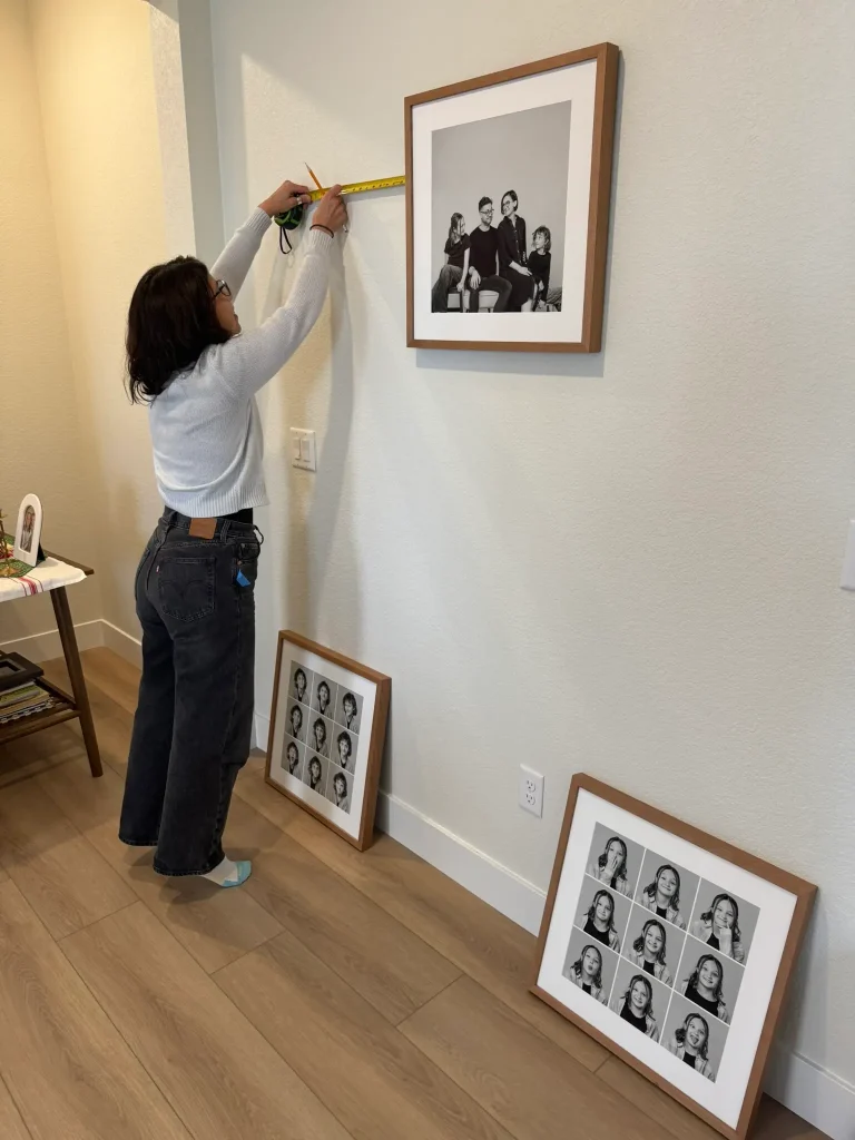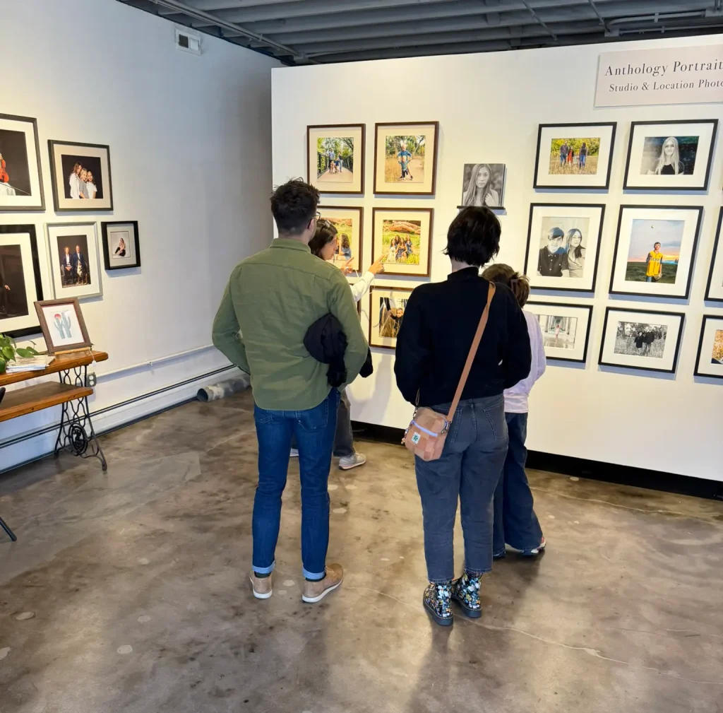 We recently worked with a family to capture those “just because” photos, and were there with them for every step of the process. We first started with a consultation with the clients to determine both what style of images the family wanted as well as what their plan was for the photos after they were completed. During any consultation we will determine what style of photographs the clients want (studio vs. location), what sort of clothing will be worn, and where the photographs will be hung in the home – are we starting a gallery wall, a coffee table album, or a marquee piece over your mantel place? We can conduct these consultations at the Anthology storefront, or we can come to your home to look at spaces where the photographs will hang and take measurements to start mockup layouts for gallery walls, or to determine what size a finished frame package will fit best in a space.
